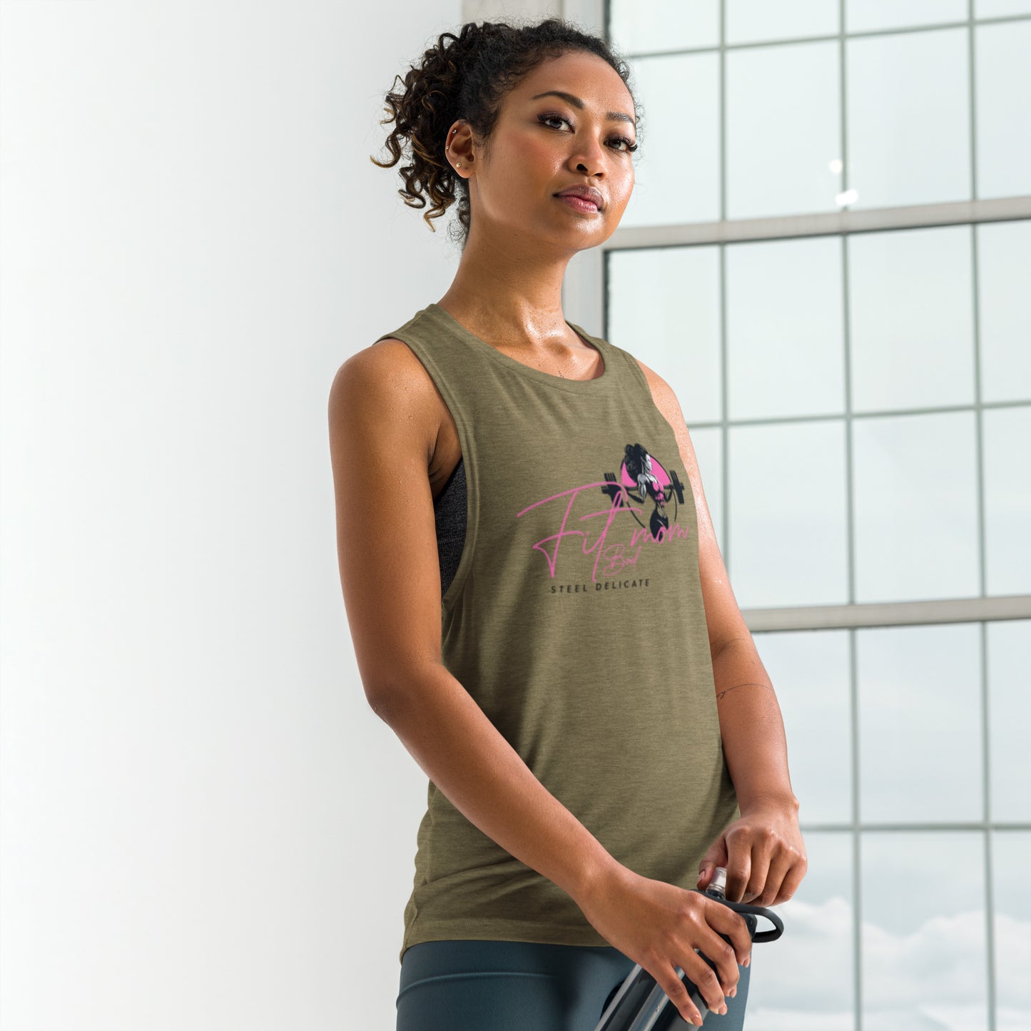 This comfortable muscle tank is soft and flowy with low cut armholes for a relaxed look.• 65% polyester, 35% viscose